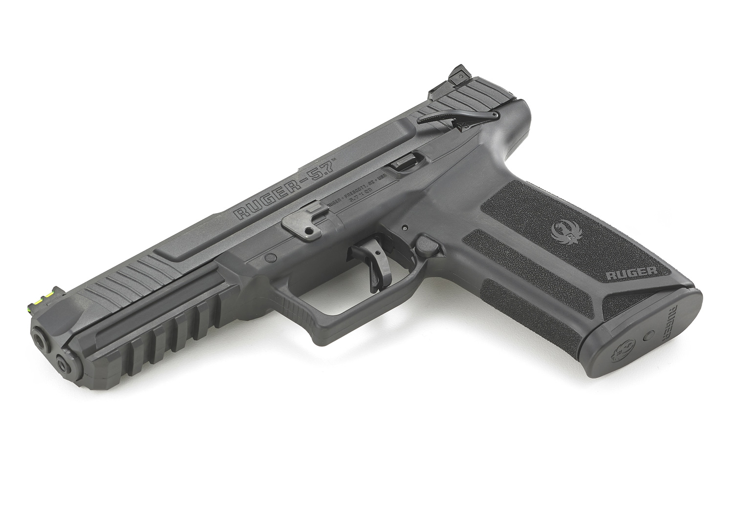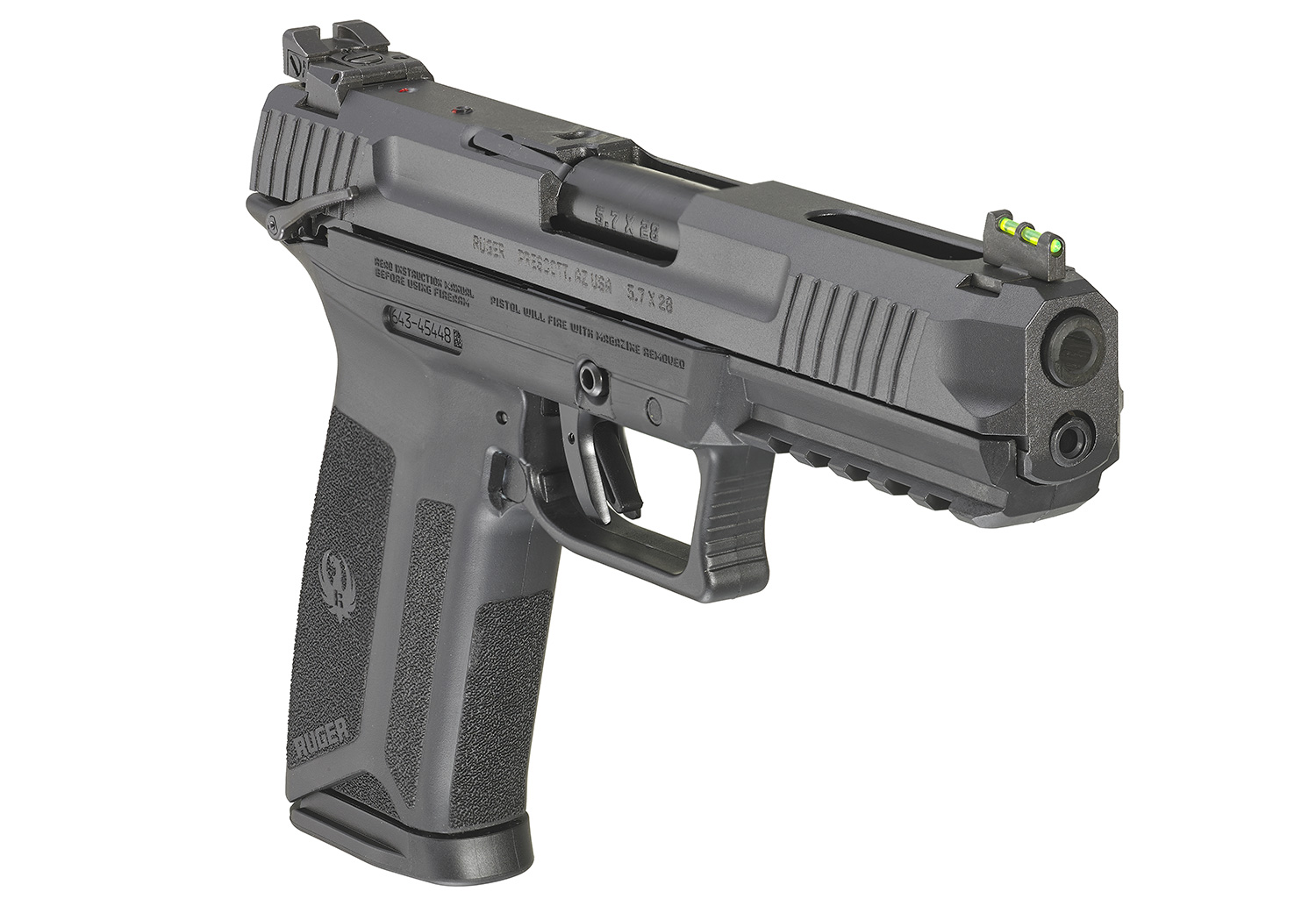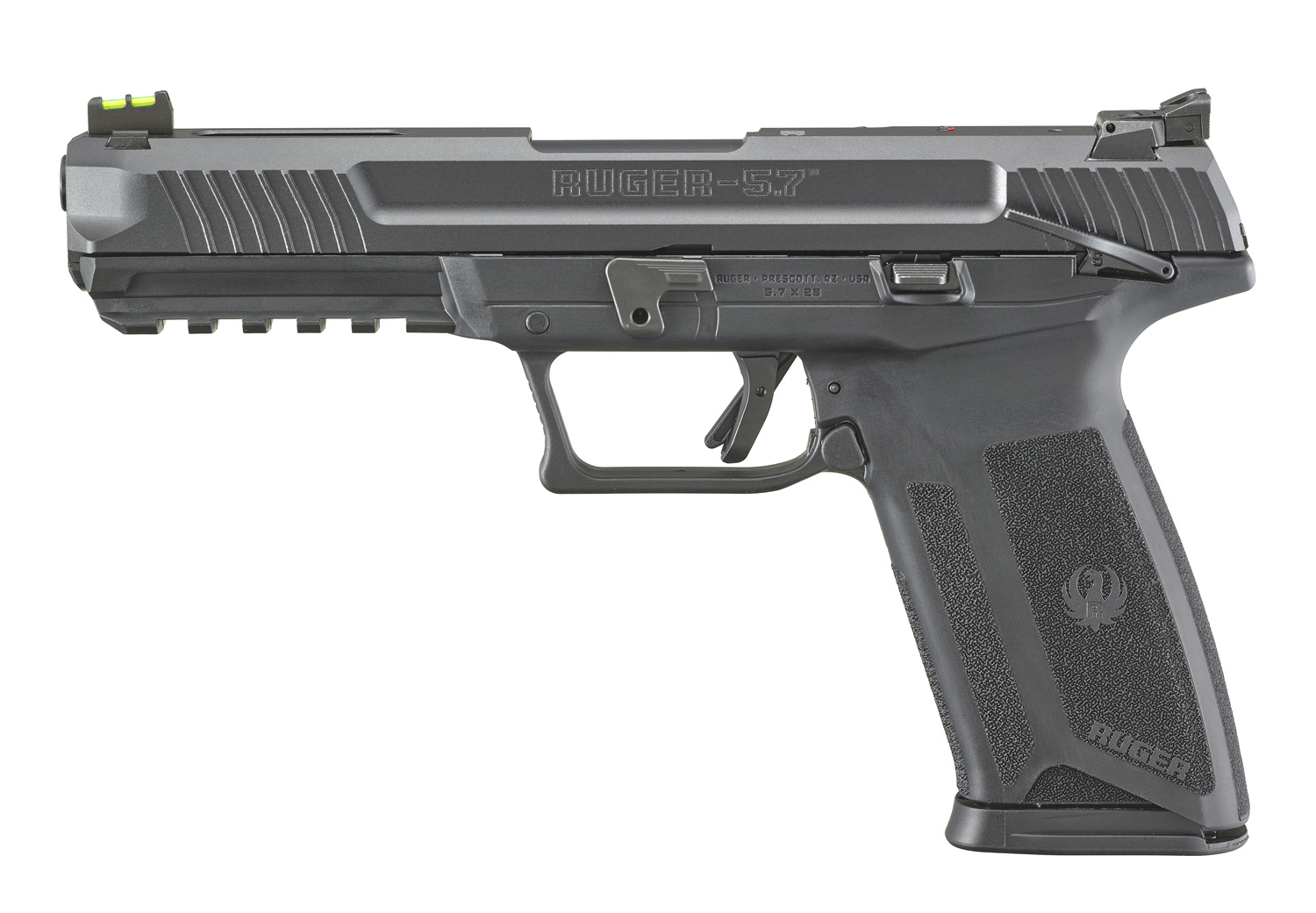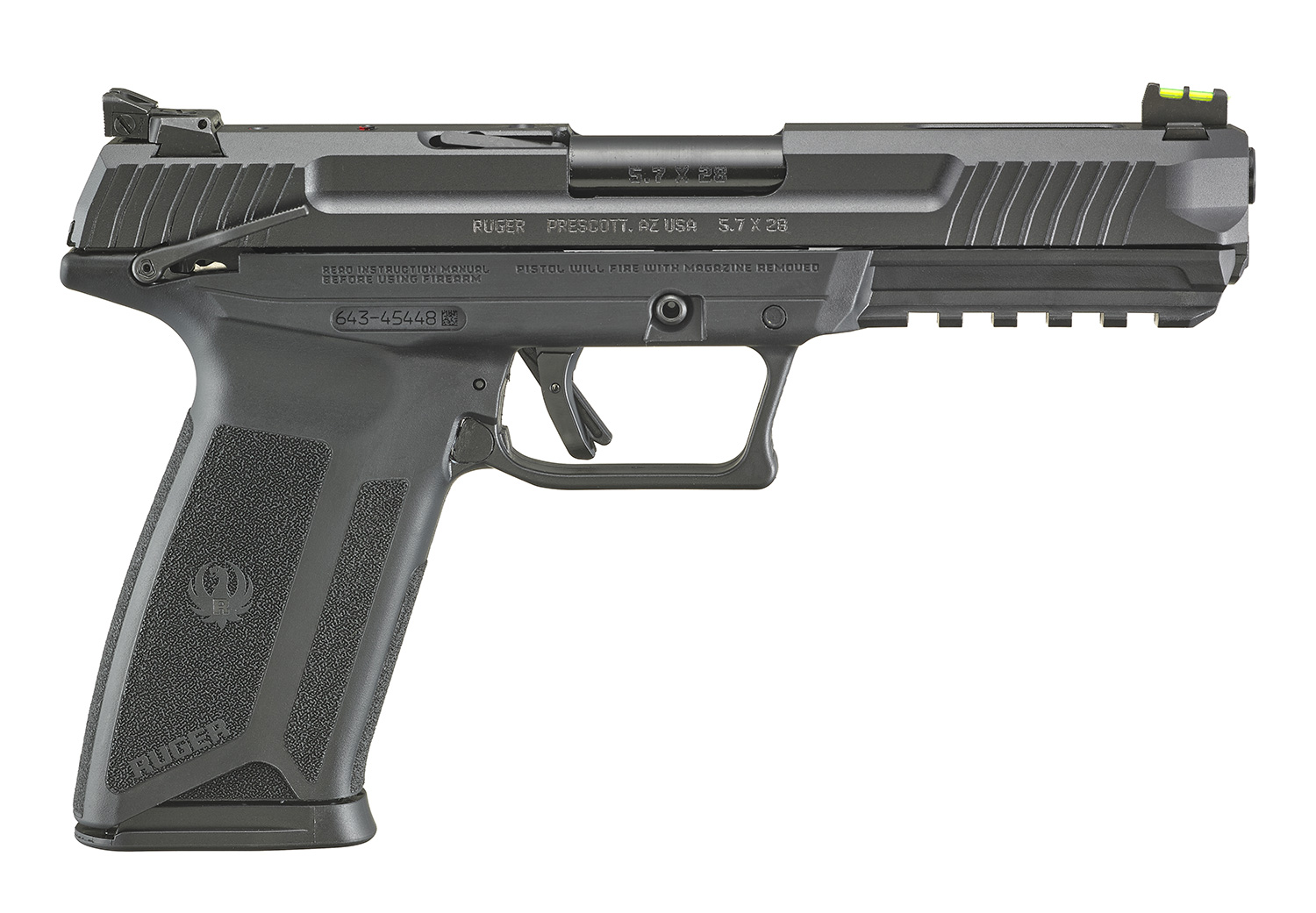 The Ruger 5.7 is a full-size, high-capacity pistol chambered in 5.7Γ28mm. Built for controllable, high-velocity performance, it features a 4.94″ barrel and a 20+1 capacity for extended range between reloads. The pistol pairs a glass-filled nylon frame with a through-hardened billet alloy steel slide (black oxide) and a black-nitride treated barrel for durability. Controls include a 1911-style ambidextrous manual safety, reversible magazine release, and a slide drilled and tapped for optics. Sights are a fiber-optic front and an adjustable rear β ideal for shooters wanting full-size ergonomics with low felt recoil and modern sighting options.